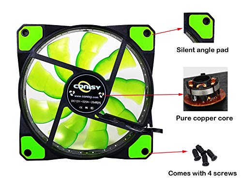 2 x CONISY 12cm Ventilador para caja de ordenador – Verde