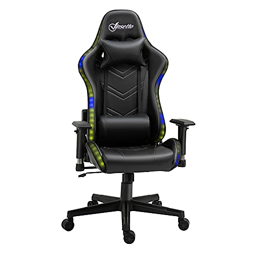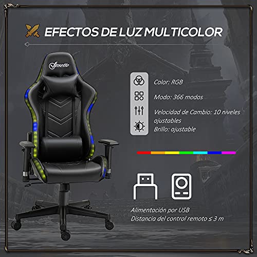 ESTILO GAMING CON LUZ LED: Esta silla para juegos cuenta con luces LED flash multicolor alrededor de los laterales del asiento y el respaldo. Para crear una atmósfera de juego emocionante, puedes regular el modo de luz, la velocidad de cambio, el brillo y el color mediante el mando incluido
