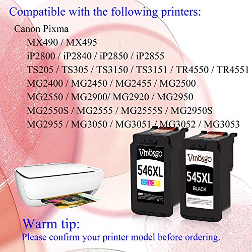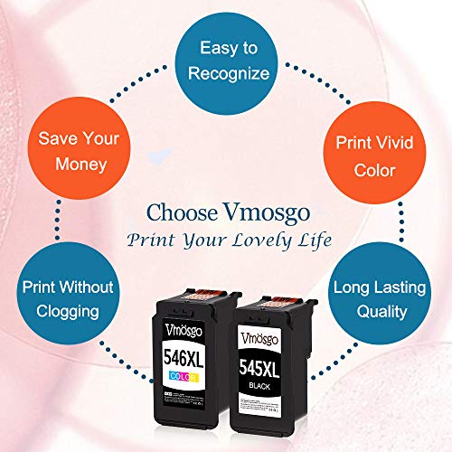 Lo Que Obtendrás: Vmosgo Reemplazo para Canon PG-545 CL-546 Cartuchos de tinta, Paquete de 2(1 Negro, 1 Tri-color)