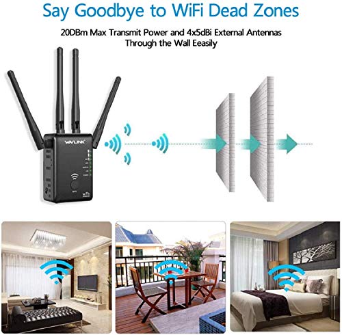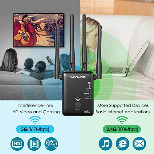 ✅ 【Amplificador de señal Wifi de doble banda de 1200 Mbps】 Repetidor Wifi de alta velocidad de hasta 1200 Mbps (867Mbps 5GHz, 2.4GHz 2.4GHz, 300Mbps) y 4 antenas externas de 5 dBi. Mejora la cobertura y le proporciona una señal estable. Diga adiós a las zonas muertas de WiFi