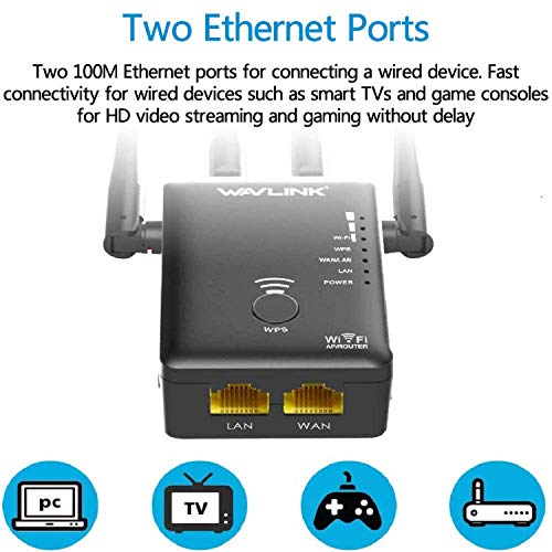 ✅ 【Conecte dispositivos con cable】 Extensor de rango WiFi con antena de doble banda 4 x dbi, la red repetidora inalámbrica tiene una supresión de ruido más fuerte y una señal más fuerte. 2 puertos Fast Ethernet (10 / 100Mbps) para conectar un dispositivo con cable como Smart TV, reproductor multimedia, consola de juegos o PC