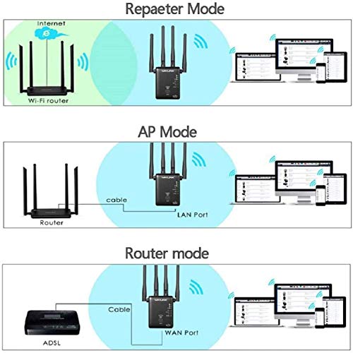 ✅ 【3 modos de funcionamiento】 Modo de repetidor / enrutador / punto de acceso inalámbrico, que cumple con sus diversos requisitos de red. Amplificador wifi funciona con todas las redes inalámbricas, enrutadores y dispositivos habilitados para Wi-Fi, incluidos dispositivos domésticos inteligentes, teléfonos inteligentes, Echo, Alexa, computadoras portátiles, etc.