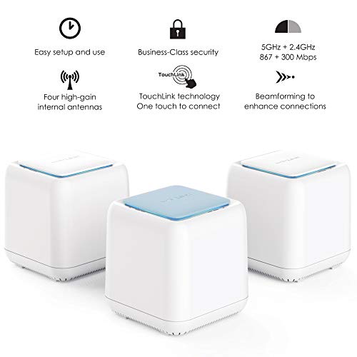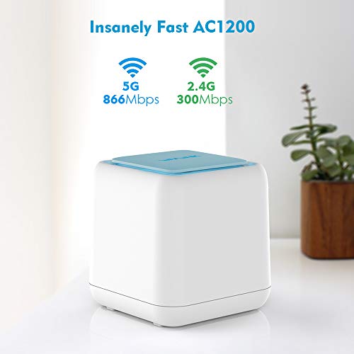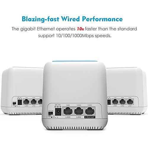Elimina las zonas muertas de WiFi y el almacenamiento en búfer: el estándar Wi-Fi 802.11ac ofrece velocidades de datos de hasta 1200Mbps (2.4GHz 300Mbps + 5GHz 900Mbps). La tecnología Beamforming mejora la cobertura de Wi-Fi, cada punto cubre 1,000 pies cuadrados, por lo que 3 puntos pueden cubrir 3,000 pies cuadrados, agregue 1 punto de satélite más para obtener más cobertura de 1,000 pies cuadrados. Se pueden agregar hasta 9 puntos de satélite