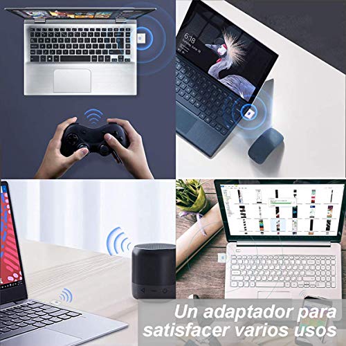 【Soporta Varios Dispotivos BT】: El adaptador Bluetooth para PC puede realizar la conexión Bluetooth con dispositivos como computadoras con Windows y televisores inteligentes sin dispositivos receptores de Bluetooth. Sin el uso de cables, los dispositivos periféricos como Xbox One S / Xbox One X y los controladores de PS4 se pueden conectar y sincronizar. Dualshock 4) / PS4 PRO, mouse, teclado, altavoz, auriculares bluetooth inalámbricos, impresora bluetooth