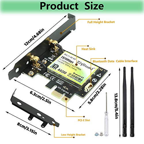 ➤Rápido WiFi 6 – La tarjeta wifi Ziyituod AX200 con tecnología Wi-Fi 802.11ax de próxima generación (WIFI 6), lleva tu escritorio Wi-Fi a la siguiente manera. Compatible con banda de 2,4 GHz o banda de 5 GHz a todos tus dispositivos con una velocidad de transmisión inalámbrica de hasta 2974 Mbps. Fácil para AR/VR, juegos en línea y transmisión de vídeo 4K / 8K Ultra HD.