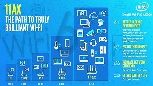 ➤Más eficiencia, menos congestión — Utilizando el último chipest Intel Wi-Fi 6 AX200, con enlace ascendente y descendente MU-MIMO, OFDMA, 1024QAM, tiempo de activación objetivo y tecnología de reutilización espacial para una mejor eficiencia y rendimiento. Di adiós a las conexiones lentas cuando una familia de dispositivos comparten WiFi.