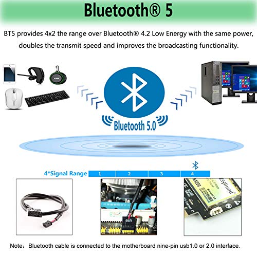 ➤Bluetooth 5 + función de AP suave: compatible con auriculares Bluetooth, estéreo Bluetooth, teclado Bluetooth, ratón Bluetooth y otros para más comodidad y demandas. Emisión WiFi eficiente Introdúzcalo en un ordenador de sobremesa para crear señales inalámbricas WIFI. Los teléfonos móviles, ordenadores portátiles, tabletas, ordenadores pueden conectarse.