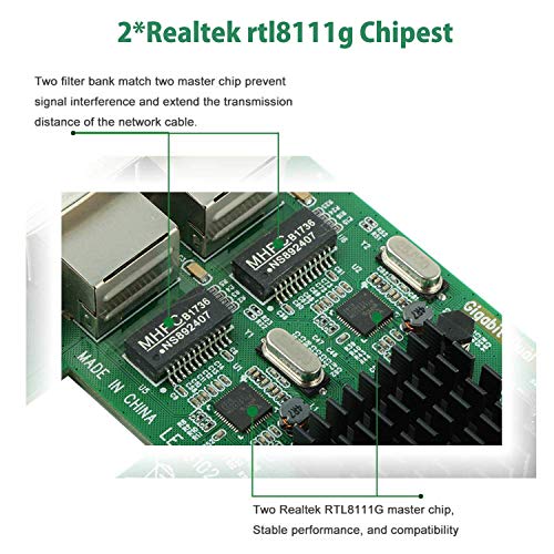 ➤Chipest —- Adopte el chip dual maestro de alto rendimiento Realtek rtl8111g, cada interfaz RJ45 corresponde a un chip. Rendimiento más estable, buena compatibilidad.